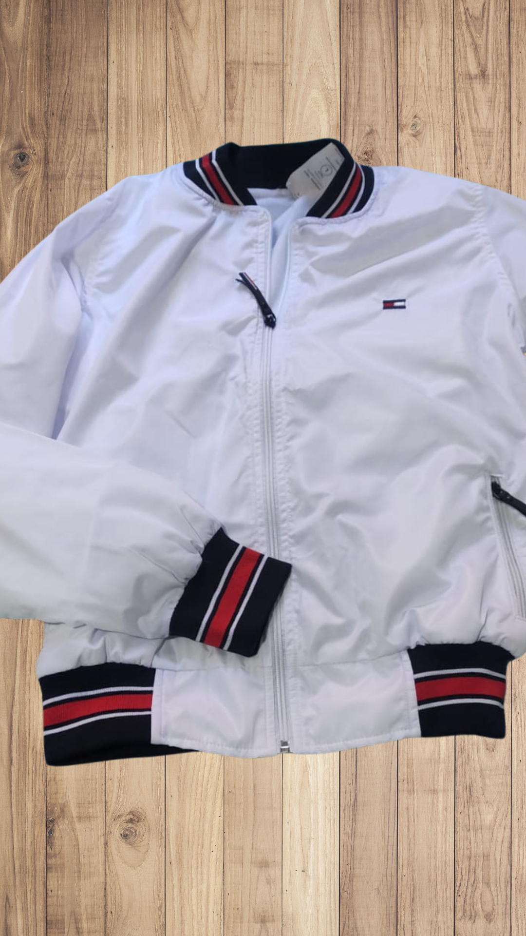 Está confeccionada con tela náutica impermeable, corta viento. Además tiene un acabado de calidad superior.